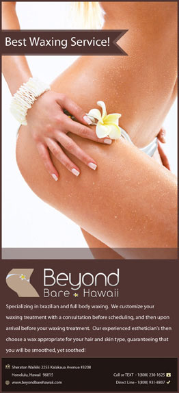 With the new Beyond Bare Hawaii logo, she was now ready to move forward with marketing her company. I’m not only a Hawaii Web Designer, but a talented graphic artist, so Mae didn’t have to go through the hassle of searching many companies for her media needs. I was then able to use the logo and Mae’s ideas from our initial discussions, to create beautiful print media such as business cards for Mae and her staff, brochures, and gift certificates.